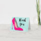 Ett tackkort-kort med shock rosa stiletto sko. Ange vattenfärgsbakgrund för myntgrönt. Chic och glamorös.