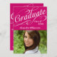 Ljusstark shock rosa-bakgrund med vit, snabbt gigantisk skripttext med "student" och ett anpassningsbar år, underbart för student att tillkännage den stora bedriften. Fira på baksidan med anpassningsbarnas händelsetext för dina gäster. All design Copyright © www.CustomInvitesOnline.com