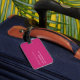 En färgad med giftig shock rosa. Anpassa och lägg till ditt monogram brev och fullt namn på framsidan. Din kontaktinformation på baksidan.