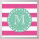 Shock rosa White Rand Mönster, Mint Grönt Monogra Poster