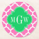 Shock rosa Wt Moroccan #5 Emerald 3 Initial Monogr Underlägg Papper Rund
