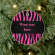 Cute girly zebra tryck i shock rosa och svart. Visas här på den runda ornamenten. Lägg texten på den.