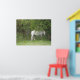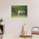 Det här vackra utskriften har ett vackert foto av en underbar vit häst som står under en träd tittar lite blyg.