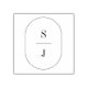 Den enkla svart-vita designen har ett geometriskt oval monogram med parets initialer och en elegant men boho-känsla.