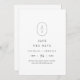 Den här neutraltens svarta och vita klassiska bröllop spara datum från Shylah-samlingen är perfekt för ett klassiskt bröllop. Den enkla svarta och vita utformningen har ett geometriskt ovalmonogram med parets initialer och en elegant som ändå känner sig stark.