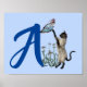 Siamese Cat Butterfly Monogram Initial A Poster