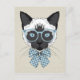 Den här designen har en siamesisk katt som är klädd i ett blått par glas och med bockslips.