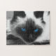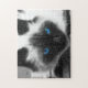 Svartvitt fotografera av en härlig Siamese katt med isigblåttögon. Underbar gåva för dig eller kattälskare i ditt liv.