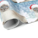 Blått pekar universitetslärare för siamese kattunge en Santa hatt för att få i helgdag för älskare för julandekatten som slår in papper