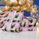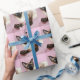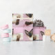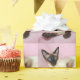 Försegla pekar den Siamese katten med henne blåttögon som breda ut sig med henne tassen fördjupad på en rosa filtbakgrund.