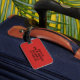 Denna lättviktiga akrylaktiska märkre för bagage, ryggsäck eller till och med väska är sport en hedervärd siamesisk kattunge med en kamouflage collar och klocka med ett humoristiskt budskap på märkrns framsida. Det finns en pratbubbla och röd "Rör inte vid"-text ovanför kattens huvud med "den här burken ägs av en Crazy Cat Dam" skriven under kattungen. Mallen fält är avsedd för dina personliga kontaktuppgifter som finns på baksidan av märkrn. Photo ©Patricia AZ Phillips.