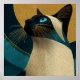 Piercing turquoise eyes and sleek dark points define this elegant Siamese cat as it gazes upward toward a radiant golden mosaic sun against deep teal geometric patterns. Intricate pointillist textures bring rich contrast between the creamy fur and bold black accents, creating a sophisticated blend of modern graphic art and timeless feline grace. Ideal for cat lovers and art collectors, this striking digital illustration adds instant elegance to canvas prints, posters, throw pillows, phone cases, mugs, tapestries, and stylish home décor.