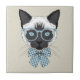 Denna design presenterar en iklädd Siamese katt en blått parar av exponeringsglas och den rutiga flugan.