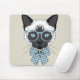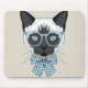 Denna design presenterar en iklädd Siamese katt en blått parar av exponeringsglas och den rutiga flugan.