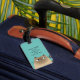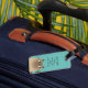 Enkel, modern, söt, rolig, kawaii siames katt orange och blå bagagelapp, med rolig text och avsändaradress.