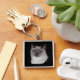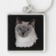 Siamesisk katt med blå ögon fyrkantig silverfärgad nyckelring