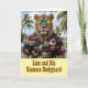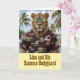En lejon som bär en hawaiisk skjorta och solglasögon har en siamesisk kattunge i fickan.