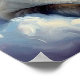 Denna fantasifulla affisch visar en siames katt som tar en stund att koppla av på ett mjukt drömlikt molnlandskap färdigt i ett oljemålningstryck.