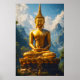 Transport yourself to the serene, spiritual heart of Southeast Asia with this breathtaking image of a Golden Buddha enthroned high above a lush, misty landscape.