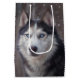 Denna digitala tavla visar en Siberian husky som står på snö, dess päls som lyssnar med frostiga högdagrar när vinterlandskapet sträcker sig oändligt långt bakom det. Hund uttryckliga ögon uppmärksammar tittaren.