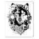 Djurkonst i siberian husky med celestial måne, sol, mörk natten himlar och stjärnor omfattar även fåglar, ro, solblommor och träd.