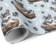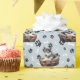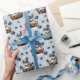 En berömvärd Siberian husky-valp som lägger in ett korgare basket är kännetecknet i mönster på denna tillfällen-gåva som omsluter sig pappert. Porträtt ligger mitt i mönster på svart tass avtryck och vita ben och upprepas med silver blå bakgrund. Perfekt till Husky Hund älskare!