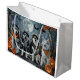 Släpp upp spookandan med den här eerie Halloween-designen med en hundar-förpackning under en mörk, månbelyst himmel, omgiven av flygande fladdermus och glödande pumpor. Perfekt för dem som kärlek en aning skrämmande roligt med sina hårigets vänner!