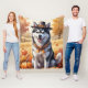 Siberian husky i Höst löv Thanksgiving Art Fleecefilt