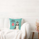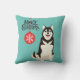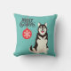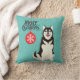 Säsong dekorativ kudde har leende Siberian husky Hund med rött ornament och God jul på akvatisk bakgrund
