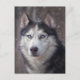 Denna digitala tavla visar en Siberian husky som står på snö, dess päls som lyssnar med frostiga högdagrar när vinterlandskapet sträcker sig oändligt långt bakom det. Hund uttryckliga ögon uppmärksammar tittaren.