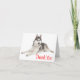 Det här söta Siberian husky är redo att hjälpa dig att säga tack till vänner och familj. Det här hund-anteckningskortet i roligt har en vacker svart, vit och grått Siberian husky-hund som vilar på en skarp vit bakgrund med ett tack som du skriver ut i ett pulserande rött teckensnitt. Insidan av kortet är tom för ditt personliga meddelande. Tack Husky-kort är perfekt för... * Företag - veterinärer, tränare, uppfödare, groomer osv. * Vänskapshandlingar * Hund- och adoptionsbyråer *Uppskattning för gåvor * Personanteckningar * Stationerigåvor - bind några kort med ett sött band rullan ner för att visa ytterligare Siberian husky-produkter som du kan njuta av.
