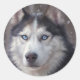 Denna digitala tavla visar en Siberian husky som står på snö, dess päls som lyssnar med frostiga högdagrar när vinterlandskapet sträcker sig oändligt långt bakom det. Hund uttryckliga ögon uppmärksammar tittaren.