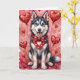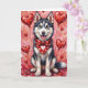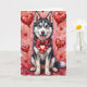 Siberian Husky Valentine Dog Sitting with Hearts Kort