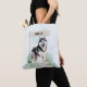 Carry your essentials stylishly with this Siberian Husky tote bag featuring a watercolor design and customizable name flag. Perfect for breed enthusiasts.
