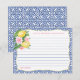 Råd till blivande brud-kort design prydd med vackra rosa peonior och rosor, akvarell citroner, blanka gröna blad och vintage blå vita textaccenter för att matcha mina baby shower inbjudningsdesigner i samma färgskala. Denna design skulle också fungera för ett råd / önskningar-kort till en blivande mamma.