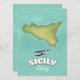 Sicilien Italien karta med ett vackert gammalt stöd flygplan.