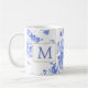 initial traditionell sida för mugg för mönster för china för blåttvitblomma. På trend yet tidlöst i moderna hem och landkök. china för blåttvitblomma med initial monogrammetext som är anpassadet