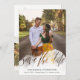 Vacker och unik spara datumet-kort med ett sidenöverdrag med spara datumet utskuret så att ditt foto skymtar genom i ett vackert virvlande manus. Lägg till ett annat foto på baksidan tillsammans med detaljerna om din bröllopsfest.