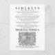 År 1610 publicerade Galileo Sidereus Nuncius. Det var det första bok av observationer från natten himlar genom ett teleskop. Det här vykortet innehåller titelsidan från bok.