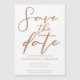 Detta sienbrunt skript Spara datummagnetisk inbjudan är ett varmt regalt färg för en brud eller groom tittar för en blandning mellan mjuk och manlig. Den vackra men minimalistiska typografin har en enkel kursiv text ovanför en chic, ett modernt serif-teckensnitt. Denna flexibla magnet inbjudan fungerar för både eftermiddag och kväll bröllop.