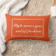Leuk sierkussentje in trendy oranje kleur met witte tekst.