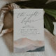 Ikväll före firade du med den här häpnadsväckande inbjudan till repetitionsmiddagen från Sierra Dusk-samlingen av Redwood & Vine Design Co. Ett vattenfärgsbergslandskap i mjuk , persikofärgad och skiffer ger en serenfärgad och romantisk ton, inspirerad av ökensolnedgångar och sydväst charm. Det moderna skript och serif typsnitt höjer designen med rustik elegans - perfekt för par som är värd för en varm, naturinspirerad samling.