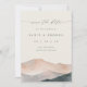 Ange tonen för din bröllopsdag med den här eleganten spara datumet från Sierra Dusk-samlingen av Redwood & Vine Design Co. Ett mjukt vattenfärgslandskap i , persikofärgat och skiffer fångar skönheten hos ett bergsolnedgång, perfekt för sydvästra eller ökeninspirerat bröllop. Modern typografi ger en förfinad beröring, medan den omvända sidan har utrymme för tre foton och personlig. Perfekt för par att planera en varm neutralt firande med naturskönhet i centrum.