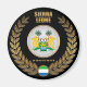 Den nationella jackat av arm av Sierra Leone ställs in på en svart bakgrund. Emblemet infiltreras i en cirkel som utmynnar i guld och som i sin tur är inkapslad i mitten av en krans som utlöses i Faux guld. Vid kransbasen är den nationella flagga insatt i en cirkel som är en del av kranen. Utformningen kompletteras av land namn, som också ligger i Faux guld.