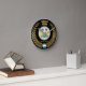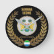 Den nationella jackat av arm av Sierra Leone ställs in på en svart bakgrund. Emblemet infiltreras i en cirkel som utmynnar i guld och som i sin tur är inkapslad i mitten av en krans som utlöses i Faux guld. Vid kransbasen är den nationella flagga insatt i en cirkel som är en del av kranen. Utformningen kompletteras av land namn, som också ligger i Faux guld.