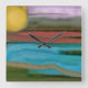 Sierra Sunrise Abstrakt Art Fyrkantig Klocka