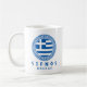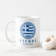 Sifnos, Greklands kaffe mugg med Greklands nationella flagga i en grekisk blå Aztec-cirkel. Mugg är perfekt för dig att dricka kaffe medan du är på semester i Sifnos, Grekland eller om du är stolt över att vara från Sifnos.
