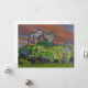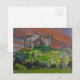 The postcard showcases a vivid oil painting of Sigiriya Lion Rock, where rich emerald greens sweep across the surrounding tropical forests. The dense foliage is layered with textured brushstrokes, creating depth and movement reminiscent of a masterful Sri Lankan landscape oil painting.