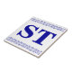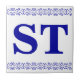 Victorian Brev Tile - Blå på vitt med en skrivares gräns. Gör skyltar på panelen. Två brev.