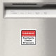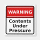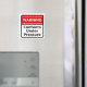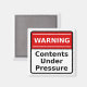 Varning - Innehåll under tryck - fyrkantig magnet med röd, vit och svart design.
